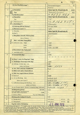 Mobile Preview: Opel Rekord C Caravan Original Fahrzeugbrief 1970