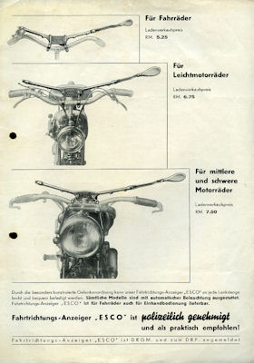 Esco Fahrtrichtungsanzeiger Prospekt 1930er Jahre