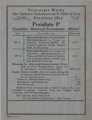 Mobile Preview: Mühle Tachometer Prospekt 1928