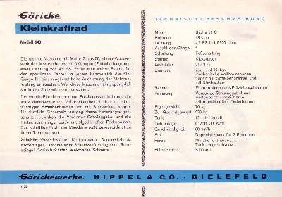 Göricke Kleinkraftrad Modell 348 Prospekt 1964
