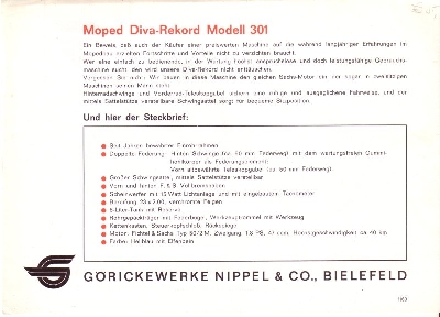 Göricke Moped Diva Rekord 301 Prospekt 11.1960