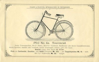 Mobile Preview: Claes & Flentje Pfeil Fahrrad Programm 1895