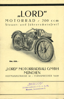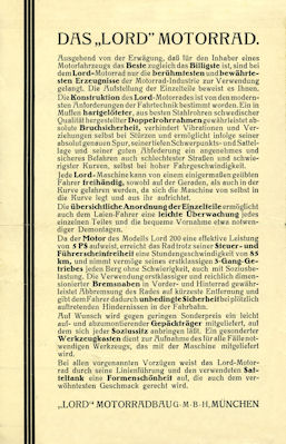 Lord 200 ccm Motorrad Prospekt ca. 1930