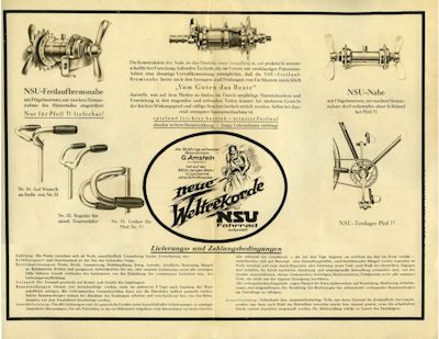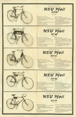 NSU Fahrrad Prospekt Pfeil ca. 1929