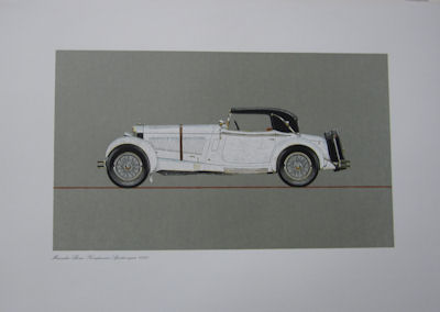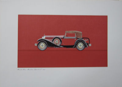 6 Holzstiche: Benz Velo 1894, Mercedes 1902, Mercedes Typ K 1927, Mercedes Komoressor Sport 1928, Mercedes Mannheim 370 S 1930 und Der Große Mercedes