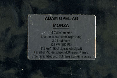 Opel Monza Werbeplatte ca. 1980