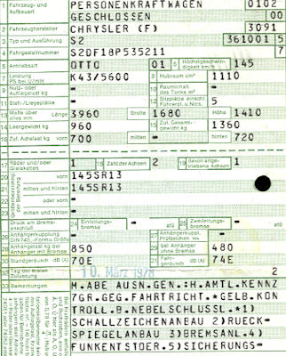 Chrysler Horizon? (Typ S2) Original Fahrzeugbrief 1978