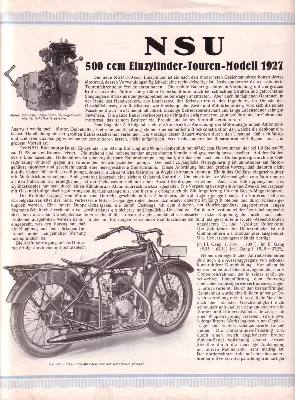 NSU 500 ccm Einzylinder Touren-Modell Prospekt 1927