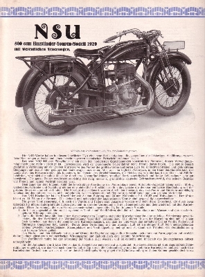 NSU 500ccm Einzylinder Touren Modell Prospekt 1929