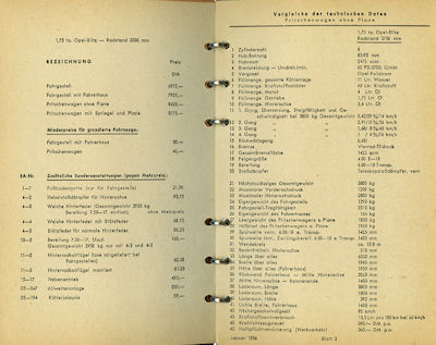 Ca. 60 Seiten 18 x 12 cm Es werden Daten der Opel Modelle mit anderen Modellen verglichen Guter Zustand