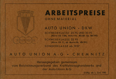 DKW Schwebeklasse Sonderklasse Arbeitspreise 1937-1941