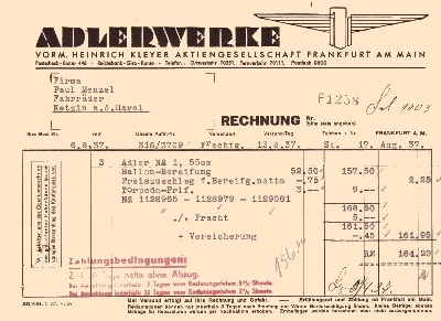 Mobile Preview: Adler Schreiben 1920/30er Jahre