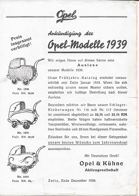 Opel & Kühne Kinderwagen Prospekt 1939