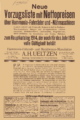 Hammonia Preisliste Fahrräder 1915