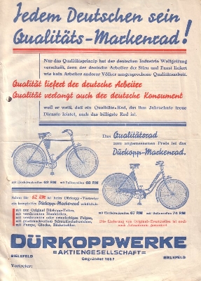 Dürkopp Fahrrad Prospekt 1930er Jahre