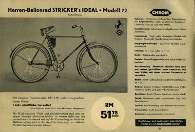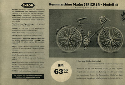 Stricker Fahrrad Programm 1935