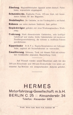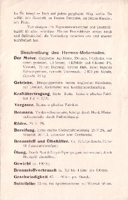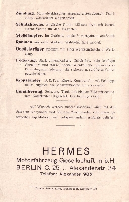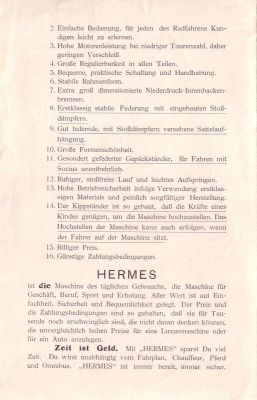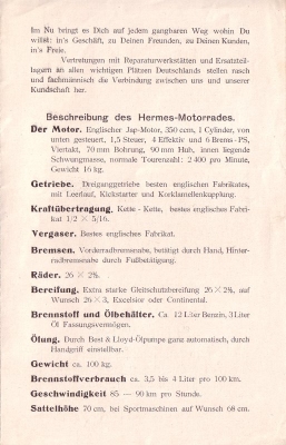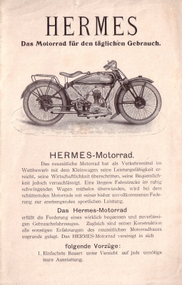 Hermes 350 ccm Motorrad Prospekt 1924/25