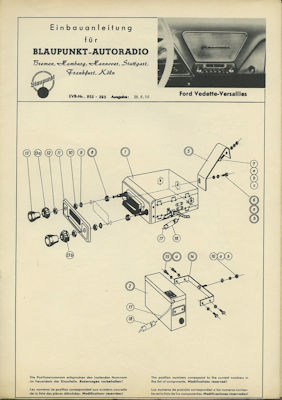 Ford Vedette / Blaupunkt Autoradio Einbauanleitung 8.1956