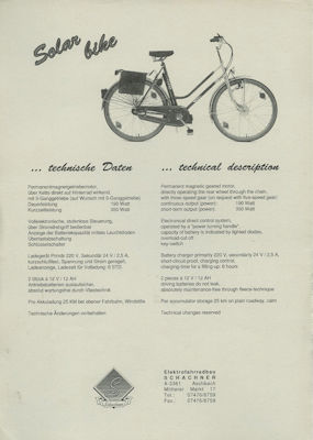 Schachner Solar-Fahrrad Prospekt 1990er Jahre
