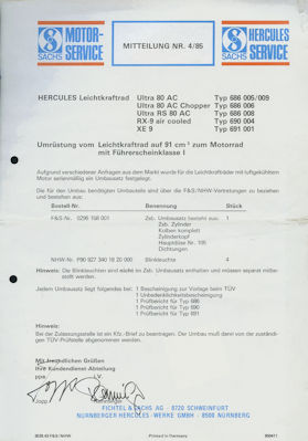1 Seite DinA4 Hercules Leichtkraftrad Umrüstung auf 91 ccm Guter Zustand, gelocht