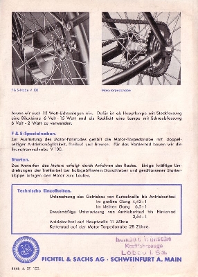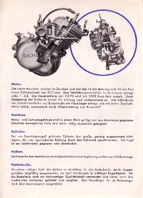 Sachs Motor 98ccm für Motorfahrräder Prospekt 4.1937