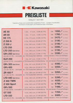 Kawasaki Preisliste 4.1984