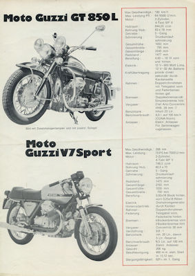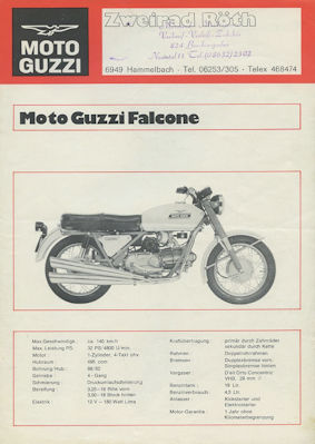2 Seiten DinA4 Deutscher Text Falcone, V 7 Sport + GT 850 L Fa. Roth Privatsammlung, kein Verkauf!!