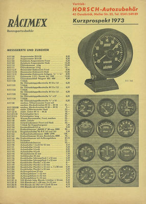 Racimex Rennsport Zubehör Prospekt 1973