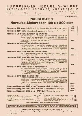 Hercules Preisliste 8.8.1932 Nr.7
