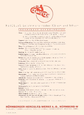 Hercules Leichtmotorräder Prospekt 1933