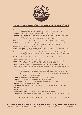 Mobile Preview: Hercules 500ccm Touren Prospekt 1935