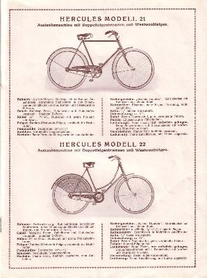 Mobile Preview: Hercules Fahrrad Programm 1930er Jahre