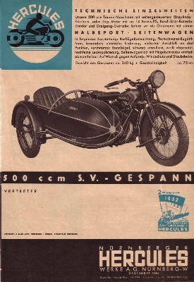 Mobile Preview: Hercules 500ccm Prospekt 1933