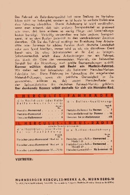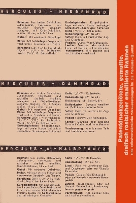 Mobile Preview: Hercules Fahrrad Programm ca. 1936