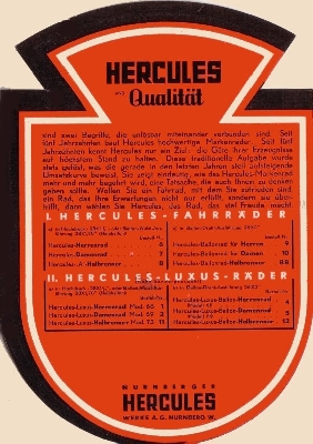 Hercules Fahrrad Programm ca. 1936