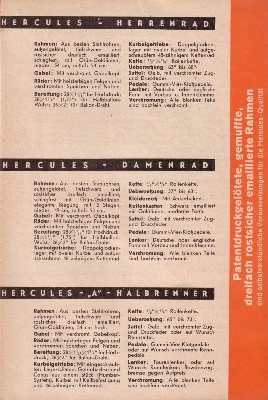 Mobile Preview: Hercules Fahrrad Programm ca. 1936