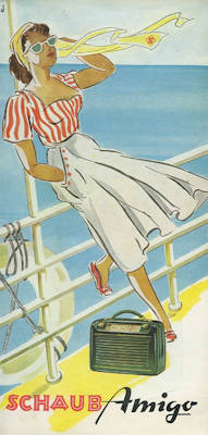 Schaub Amigo Kofferradio Prospekt ca. 1953