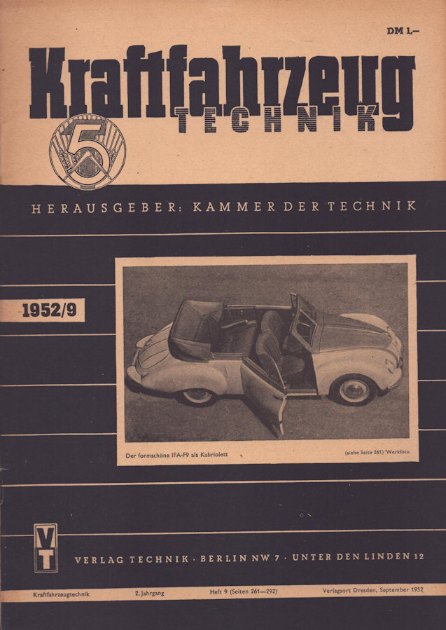 Kraftfahrzeugtechnik KFT 1952 Heft 9