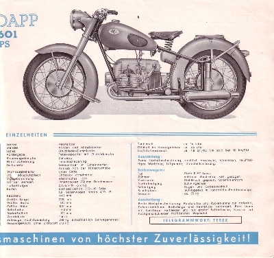 Mobile Preview: Zündapp KS 601 Prospekt ca. 1951