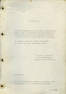 Porsche 911 Carrera RSR Bedienungsanleitung 1974