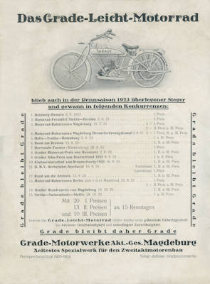 Grade Leichtmotorrad Sporterfolge Prospekt 1923