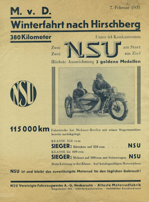 NSU Plakat Winterfahrt nach Hirschberg 2.1931