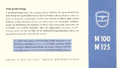 Mobile Preview: Adler Motorrad M 100 125 Prospekt 1955