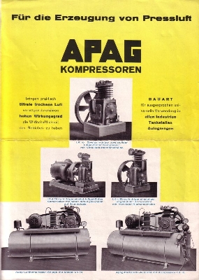 APAG Kompressoren Prospekt 1930er Jahre