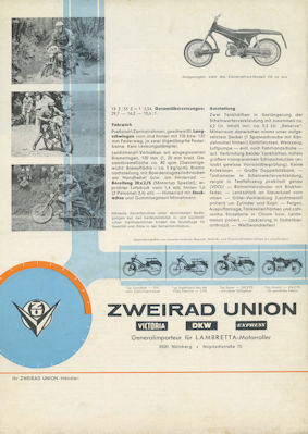 Zweirad Union AG. Nürnberg Ein kleines, gelochtes Bild (Seite 4) konnte nicht wiederhergestellt werden! Privatsammlung, kein Verkauf von originalen Prospekten, sie erhalten bei Bestellung einen Scan (Datei, Bild wird mit 300 dpi eingescannt)