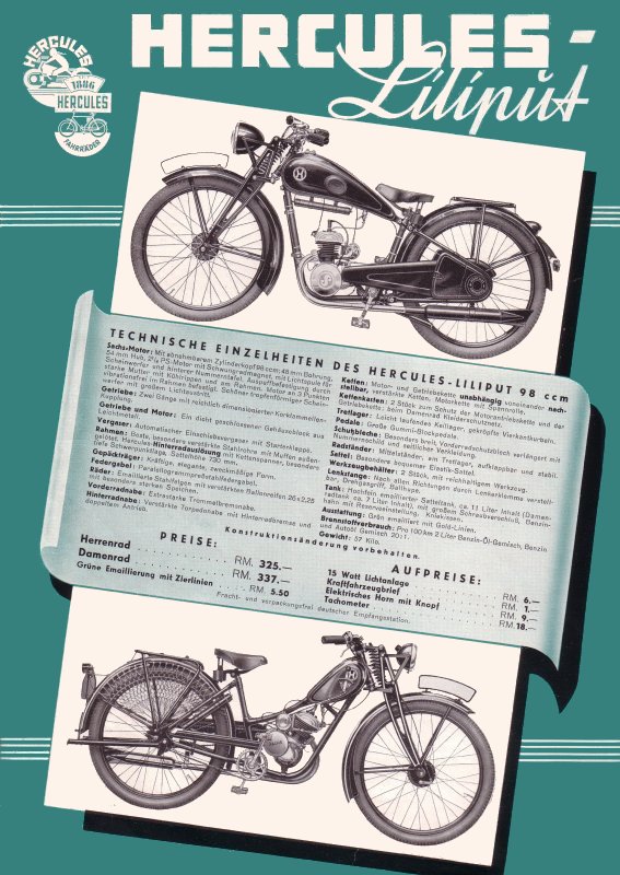Mobile Preview: Hercules Motorfahrrad Liliput Prospekt 1937