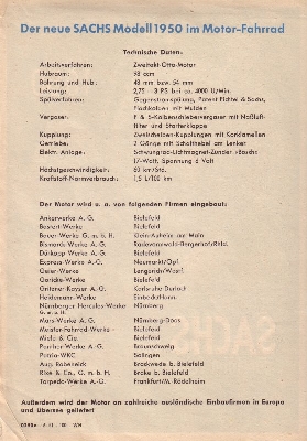 Mobile Preview: Sachs 98 ccm Motor Prospekt 1950
