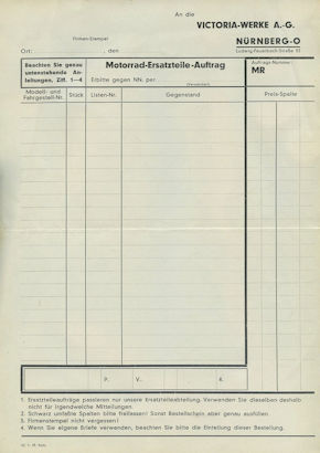 Victoria Ersatzteil-Auftrag 1.1939