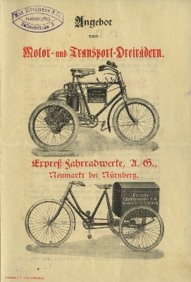Express Motor- und Transport Dreiräder Prospekt 1899