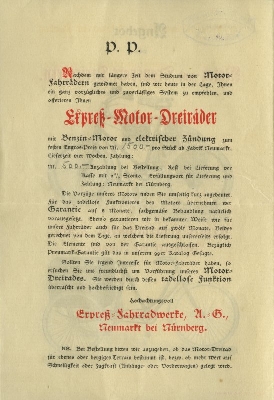 Preview: Express Motor- und Transport Dreiräder Prospekt 1899